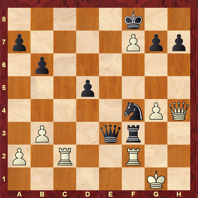 25.Dxf6 De2+ 26.Kh3 Dxd1